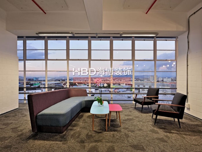 呼叫中心的办公空间的装修设计也可以做到很休闲自由的环境改造,你看到的这个休闲办公区的设计就已经能够体验到它的休闲惬意,在很大的一个程度上缓解了长时间高度紧张工作的人们。